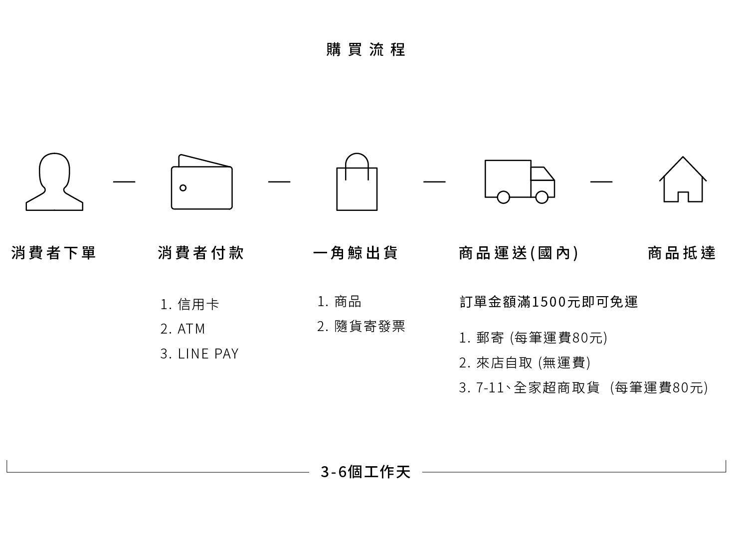 ・ 一角鯨非常重視每位顧客的購物體驗,針對產品及服務上的任何意見反應,歡迎使用網頁右下角的Messenger(閃電符號)或由Facebook粉絲專頁與我們聯繫。
